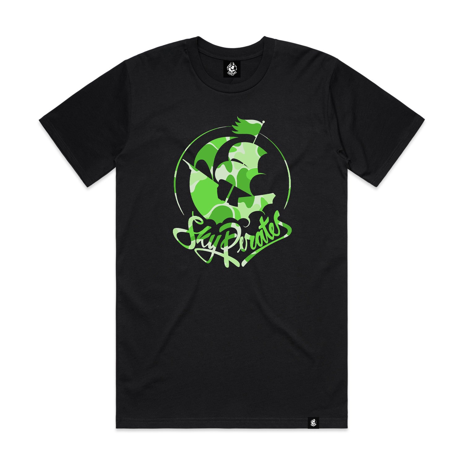 4 Green camo transfer on a regular fit and heavy weight 220 GSM, 22-singles 100% combed cotton. Built to last with neck ribbing, side seams, shoulder-to-shoulder tape, and double needle hems, plus preshrunk fabric for minimal shrinkage.